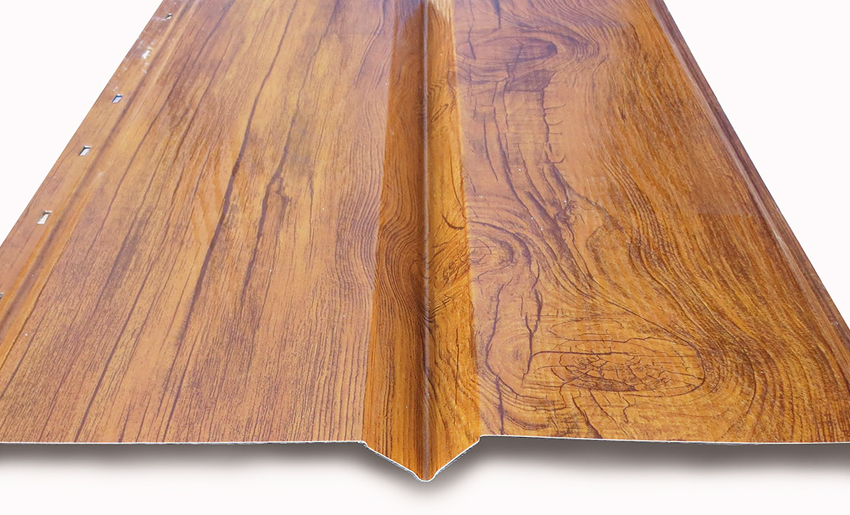 Особые декоративные качества имеет металлический сайдинг под дерево. Он чётко повторяет рисунок выбранной породы и оттенок древесины. При качественной установке отделочного материала часто можно с определённого расстояния спутать его с настоящим лесом. Такой вариант пользуется огромным спросом на рынке строительных материалов.