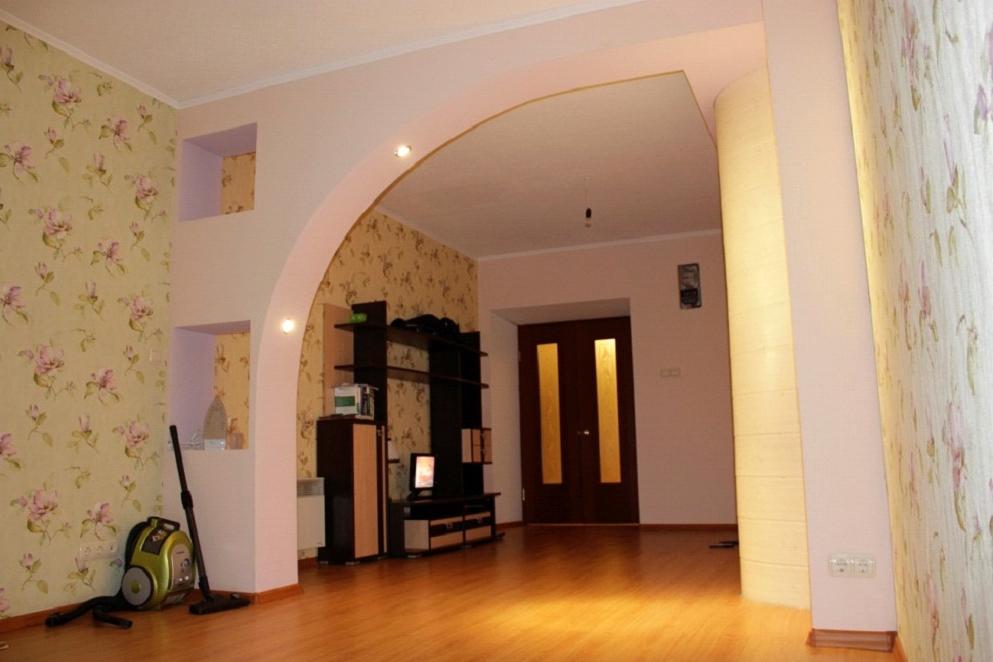 - Какую площадь и высоту потолков имеет помещение, где будет монтироваться арка. Этот вопрос важный, так как от данных показателей зависит уместность определенных видов конструкций.