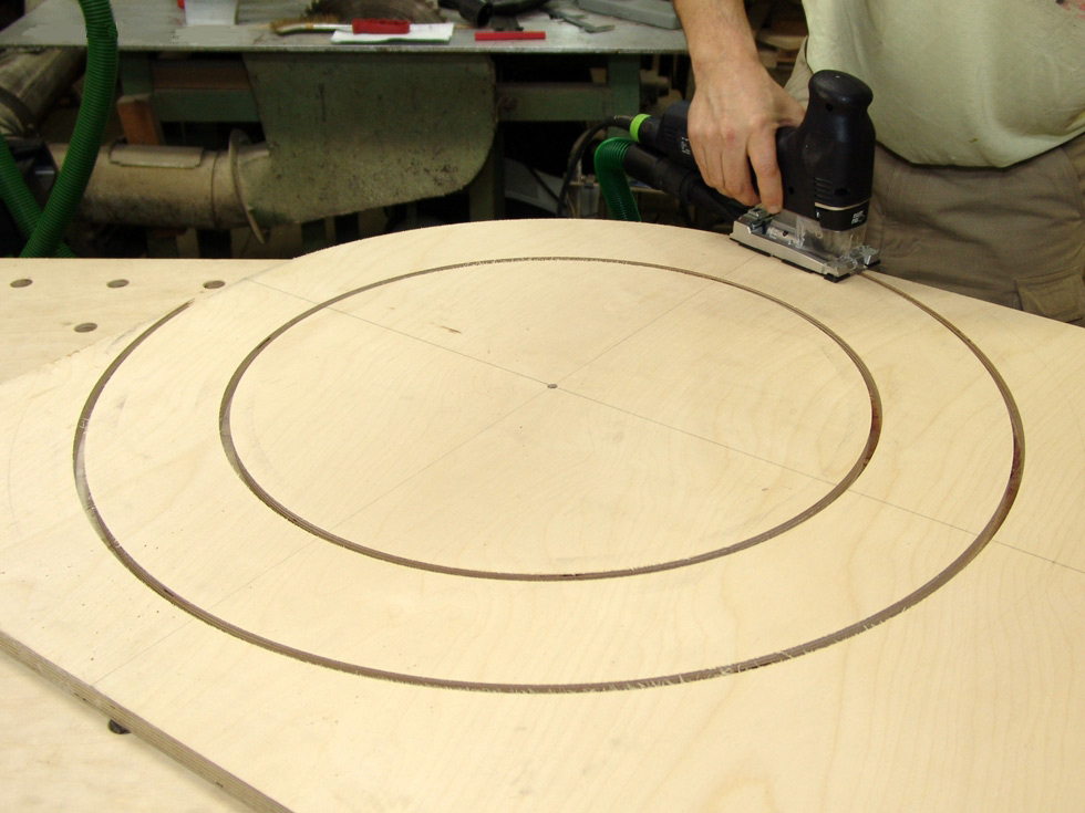 - Выравнивание внутренней поверхности. Даже если вы использовали детали небольшого размера, внутренняя поверхность дуги арки всё равно будет представлять собой многоугольник, а не круг. Чтобы привести многоугольник к окружности, нужно срезать лишнее. В условиях мастерской для этой цели используется фрезерный станок. В домашних условиях эту операцию можно проделать с помощью ручного фрезера и дополнительной оснастки к нему.