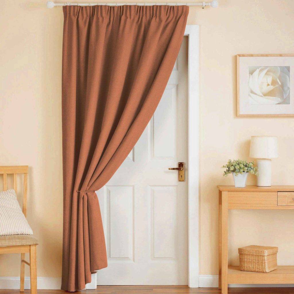 Самый простой способ скрытия прохода — занавешивание полотном ткани, которое идентично занавескам в комнате. Для закрепления применяют простой или потолочный карниз.