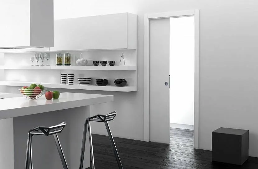 Практически незаметная дверь на кухнеИсточник profildoors-loft.ru/