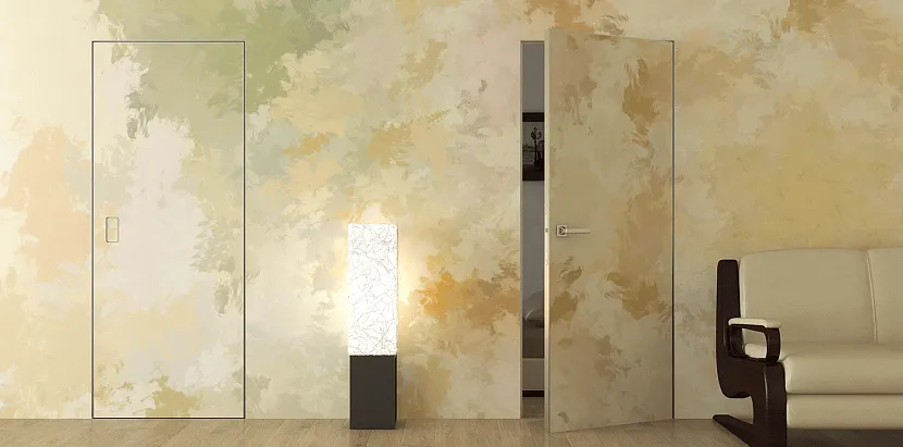 Они могут быть затем покрашены, оклеиваться обоями или их можно покрыть декоративной шпаклевкой. Благодаря тому, что плоскости створок и стен совпадают, небольшие щели между дверью и стеной практически не видны;