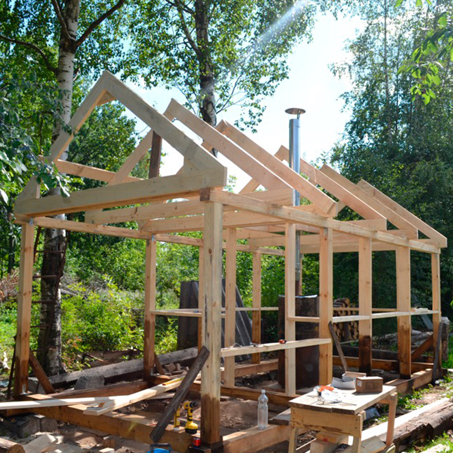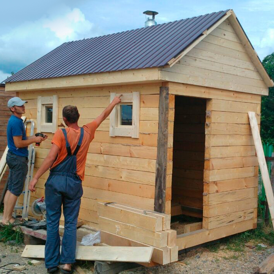 - Построить можно за день, при этом корпус бани лучше всего делать из сосновой доски – сороковки;