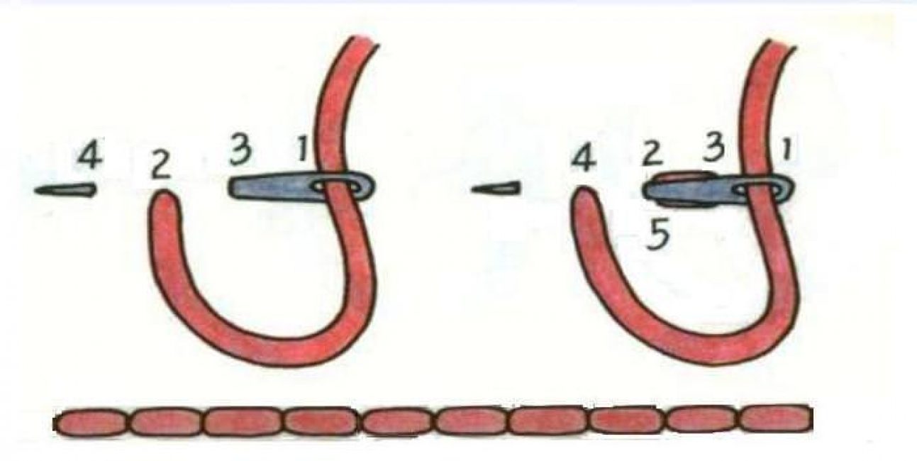 французский узелокиспользуется для вышивки центра цветов, создания шерсти или кудрявых волос; нить дважды оборачивает иглу против часовой стрелки; витки сдвигают к кончику иглы; затем ее необходимо протянуть через узелок