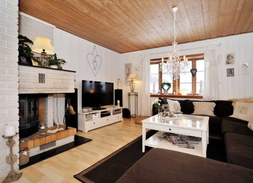 Чтобы оформить стильный интерьер зала в квартире на 16 кв. м., можно выбрать скандинавский стиль: он хорошо подходит для ограниченного пространства. Его характерные особенности: