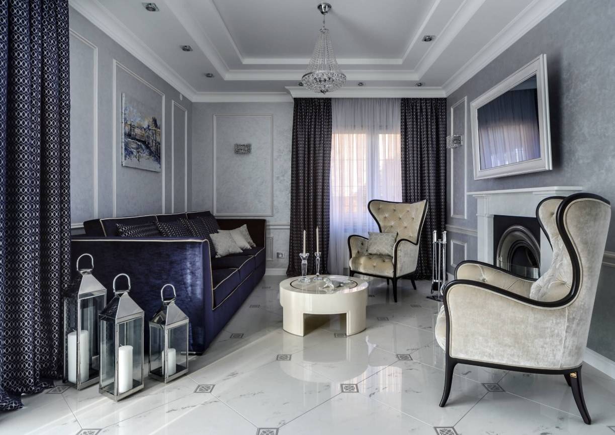 Шторы в интерьере гостиной в классическом стиле обычно украшены драпировкой, ламбрекенами, кистями, декоративными шнурами. Но в современном классицизме и эти детали могут отсутствовать – в неоклассике все гораздо проще. Здесь нет торжественности и вычурности. Менее помпезно смотрятся австрийские портьеры, которые уместны и в таких обстановках, как кантри, прованс.