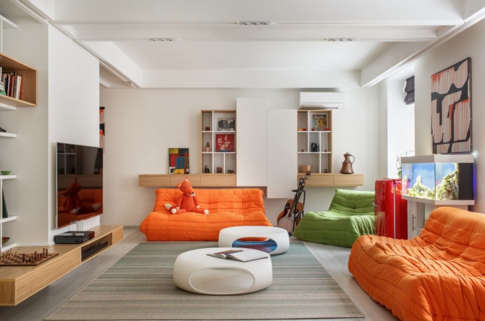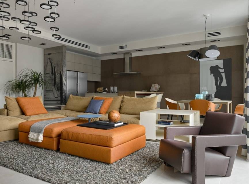 Современный стиль не есть исключением. Выбранные конструкции, будь то диваны или пуфики, должны соответствовать этому.