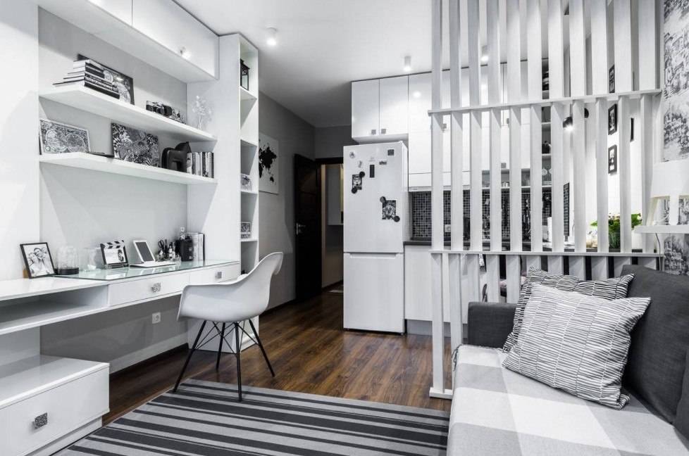 Также в продаже можно найти кровать, которая складывается в шкаф. Раскладной столик тоже не будет лишним. Пуфы с выемкой, встроенные полки и шкафчики – всё это сэкономит вам место.
