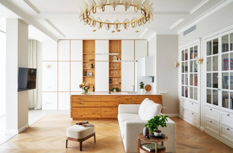 Рекомендуется ограничиться двумя оттенками дерева в одной комнате, чтобы избежать хаотичности. Допускается использование трех цветов, если один из них — белый.