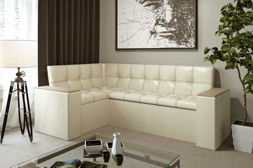 Поскольку кухня представляет собой ограниченное пространство, допускается использование диванов, центральная часть которых значительно меньше, чем у большинства моделей. Их размер – около 1,9 м. Такие модификации не имеют раскладного механизма, поэтому они могут применяться только для организации дополнительных мест для сидения.
