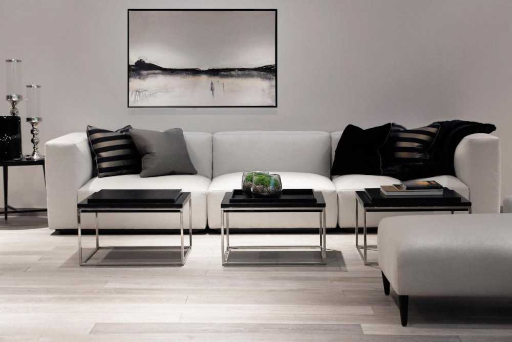 - Нейтральная в красочном интерьере. Белый или черный диван смотрится довольно стильно на фоне других ярких предметов мебели.