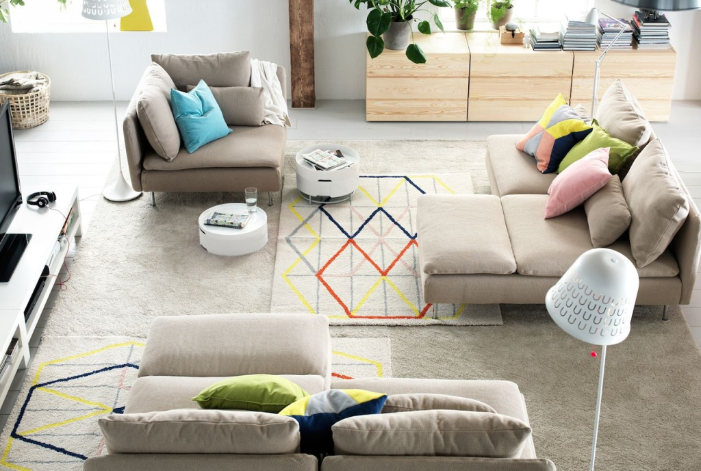 3. Скандинавский стиль тоже отличается практичностью и свободным пространством. Если говорить о мебели, то выполненная в этом направлении она характеризуется экологичностью и качеством. Диван же здесь занимает центральное место. Модульная система, выполненная в сером, зеленом, красном и горчичном оттенке с простыми линиями, поможет оживить скандинавский интерьер.