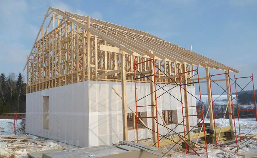 - Всесезонность строительства – для каркасного домостроения время года значения не имеет, так как полностью исключены «мокрые» строительные процессы, но если имеются залитые летом фундаменты. Зимой можно строить прри температуре до -15 °C.