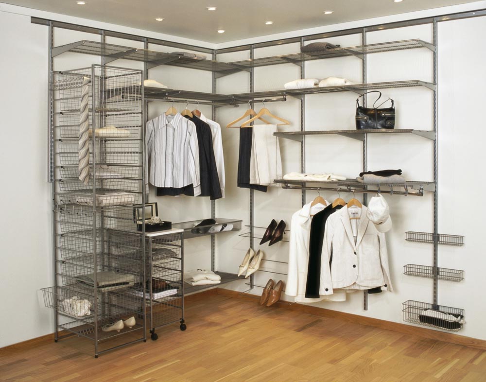 Гардеробная Эльфа (Elfa) — это целая комната, внутрь которой встраиваются полки, ящики, корзины, вешалки, брючницы и крючки для того, чтобы вешать аксессуары и сумки. Элементы шкафов выполняются из прочных материалов, благодаря чему корзины или полки способны выдержать нагрузки.