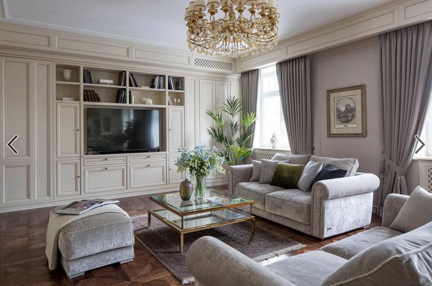 Стилевое решение модульных систем для гостиной с фото в интерьере