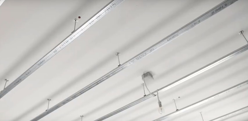 Греющая пленка устанавливается под каркасом, смонтированным для монтажа подвесного потолка, чаще всего изготавливаемого из гипсокартона. Несущая конструкция такого потолка выполняется обычным способом. Небольшой нюанс состоит в том, что расстояние между профилями не должно превышать 50 см, т.е. ширину греющей пленки.