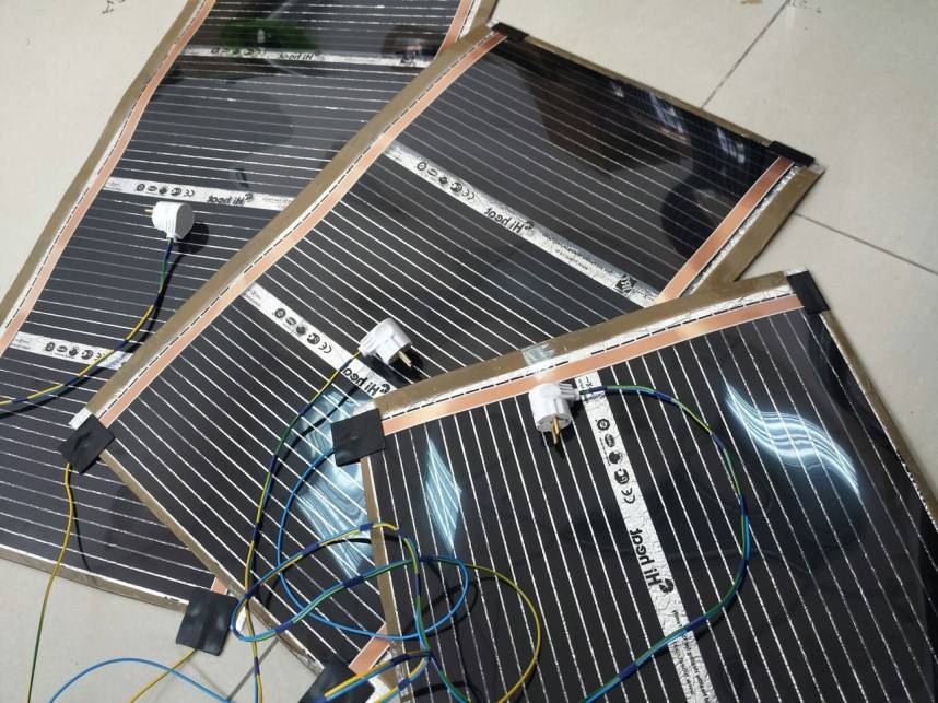 Для обустройства данного вида обогрева используется известная многим греющая инфракрасная пленка. С целью удобства ее следует заранее подготовить: нарезать и снабдить электрической вилкой.