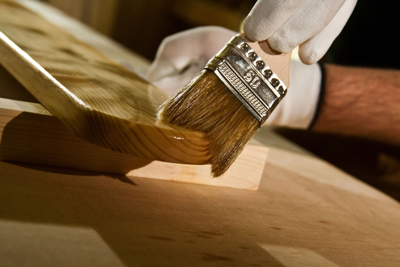 Кисти могут быть с натуральным и синтетическим ворсом. Натуральное волокно хорошо использовать для бейцев с масляной основой, синтетическое волокно – водной.