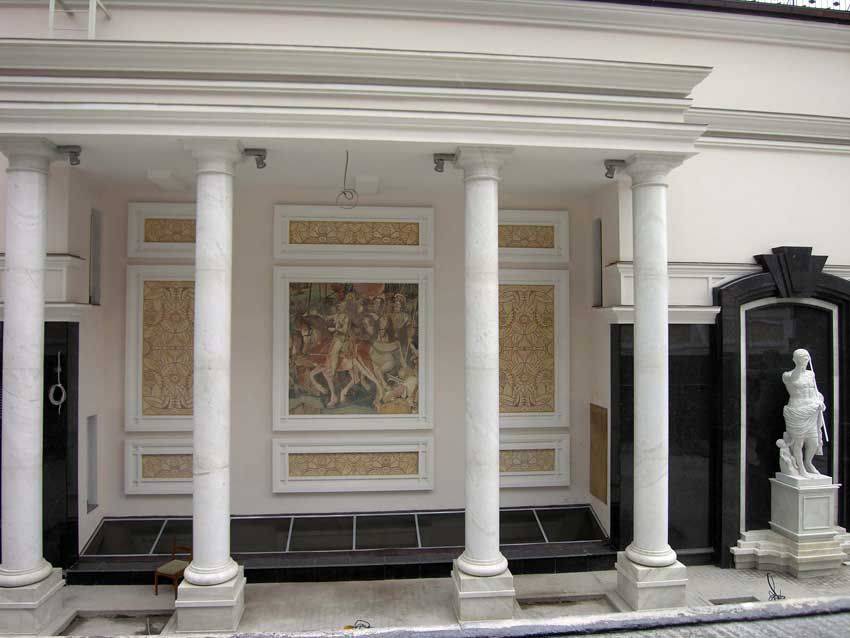Что касается «русской мозаики», то она неразрывно связана с именем великого ученого М.В. Ломоносова (хотя многие специалисты уверены в существовании древней русской мозаики, уничтоженной во времена монголо-татарского ига). Михаил Васильевич был не только гениальным ученым, но и незаурядным художником. Он всерьез увлекался мозаикой: разработал новые технологии выплавки смальты, основал мозаичную мануфактуру.