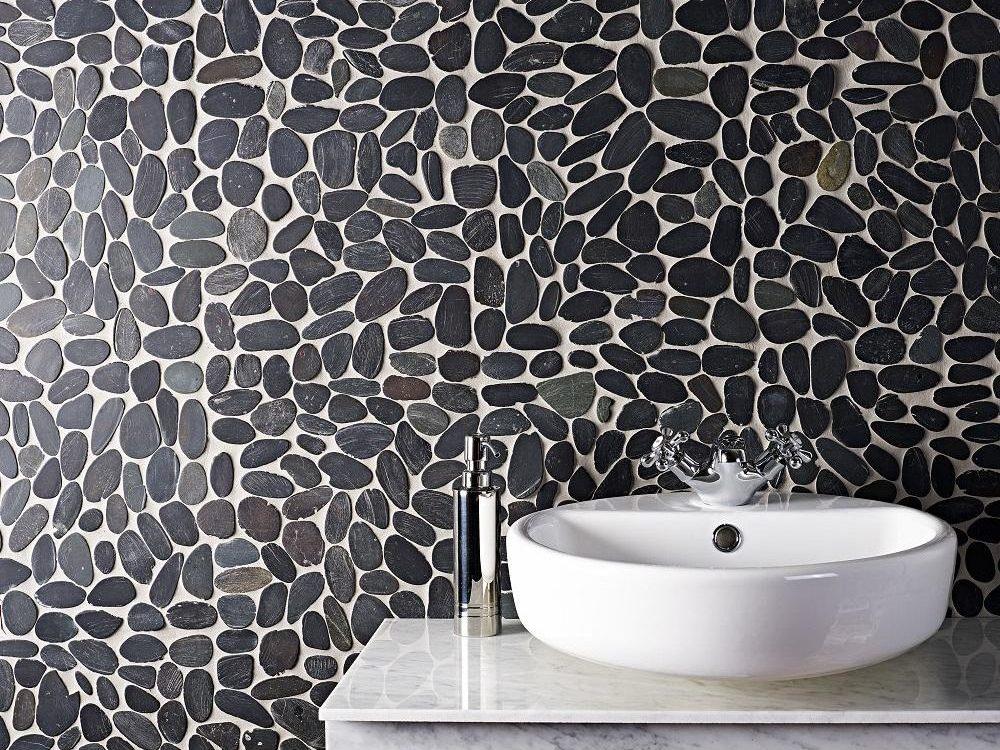 - покрытие из гальки, которая прекрасно вписывается в атмосферу ванной и обеспечивает массажный эффект.