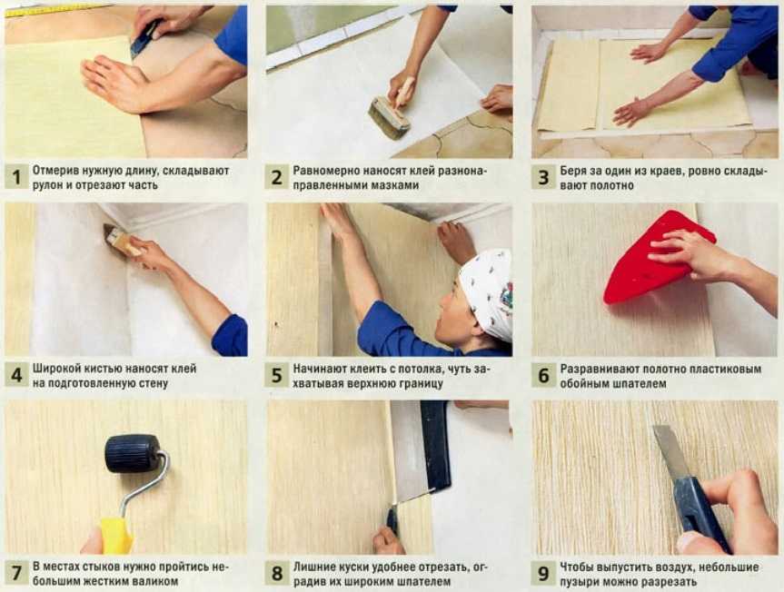 Если стены под старыми обоями штукатурка уже шелушится после снятия обоев, необходимо внимательно изучить степень сохранности покрытия и обновить его по необходимости. На фото ниже показано как клеить флизелиновые обои своими руками. Ничего сложного — всего 9 шагов и ремонт в комнате готов.