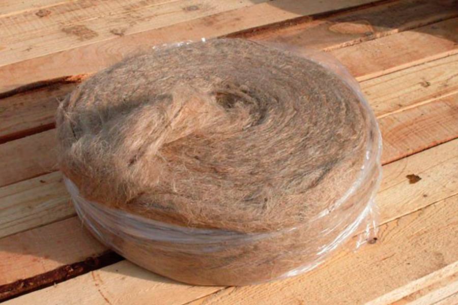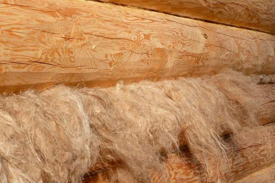Обработка джутом тоже хорошо подходит для бани, так как этот экологичный материал сохраняет природные свойства и безопасность дерева. Это волокно отличает высокая прочность, теплоизоляция, устойчивость к влаге и гниению. Рулонный материал с ровной структурой легко укладывать между венцами. Однако джут часто становится местом для размножения моли, поэтому перед применением рекомендуется обработать материал средством от моли.