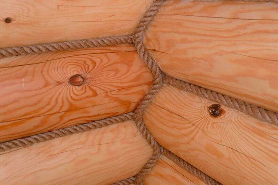 Здесь есть некоторые нюансы. Если дом возводился из бруса, конопачение угловых соединений производят тем же материалом, который закладывался в венцы, чтобы не было расхождений по толщине. Дом из оцилиндрованного бревна или лафета лучше всего утеплять джутовым или льняным канатом