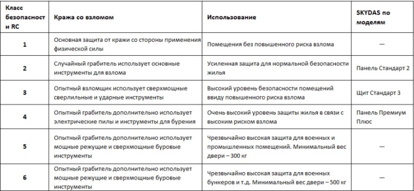 Итак, классы входных дверей по взломостойкости можно поделить на: