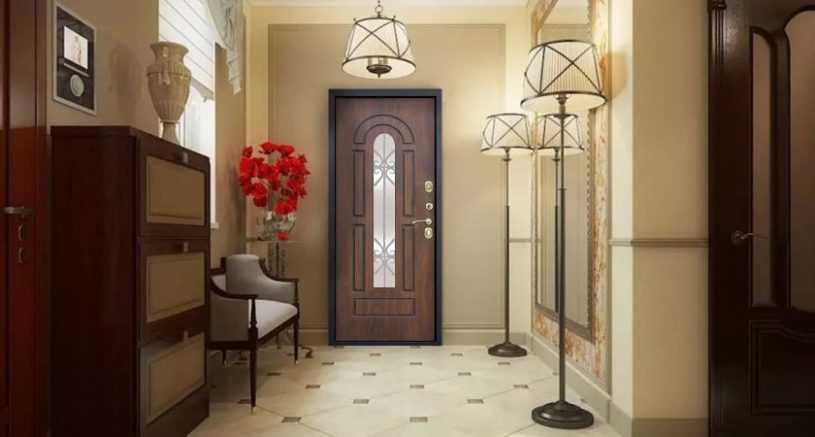 Керамогранит глазурованный и полированный создают эффект роскоши, но в зоне входной двери будет травмоопасным. На этом пространстве облицовка предпочтительна рельефной плиткой.