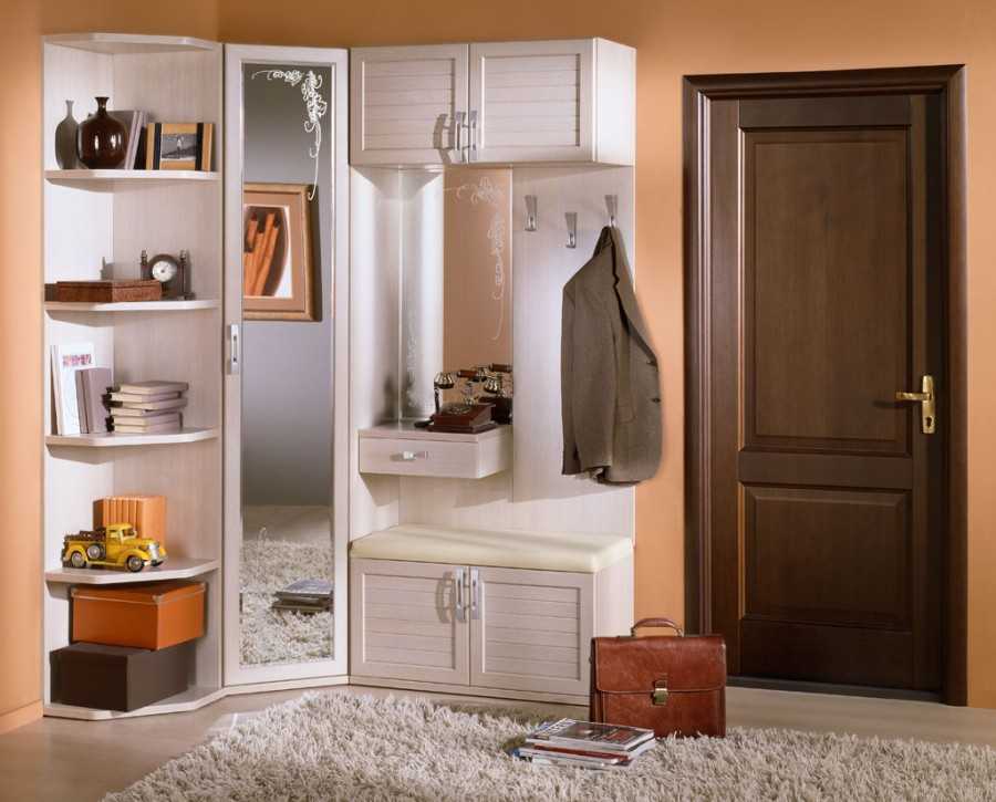 Их подбирают с учетом конкретного вида и требований к мебели. Угловой вариант более востребован для помещений с ограниченным пространством, так как позволяет максимально использовать пустые углы, превращая их в полезное место для хранения одежды, обуви и других личных вещей. Открытые полки будут свободно размещаться рядом со шкафом-купе, а классические шкафы и крючки будут установлены в другом месте. Чтобы добиться визуального расширения пространства, дверцы шкафа должны быть зеркальными.