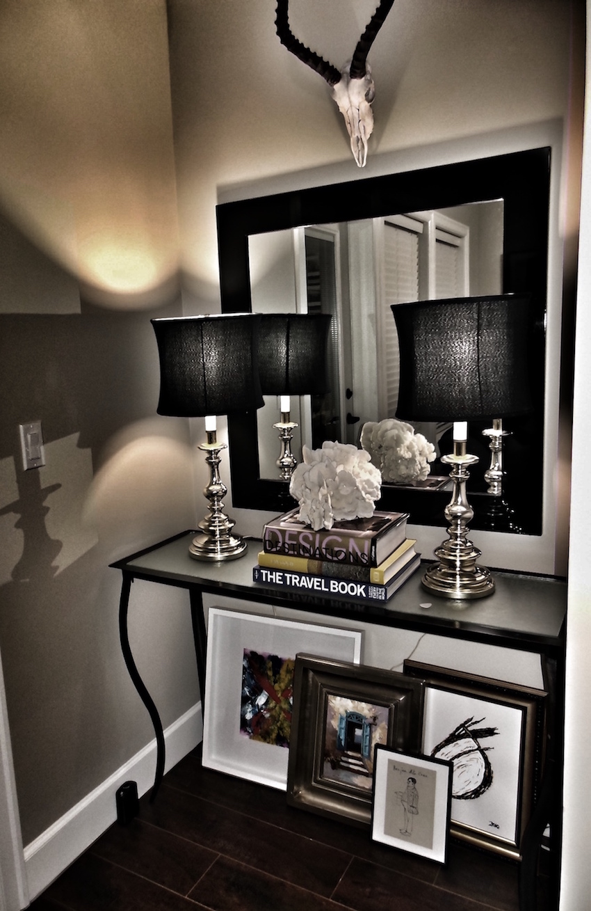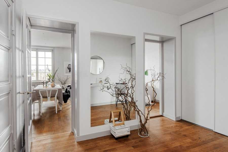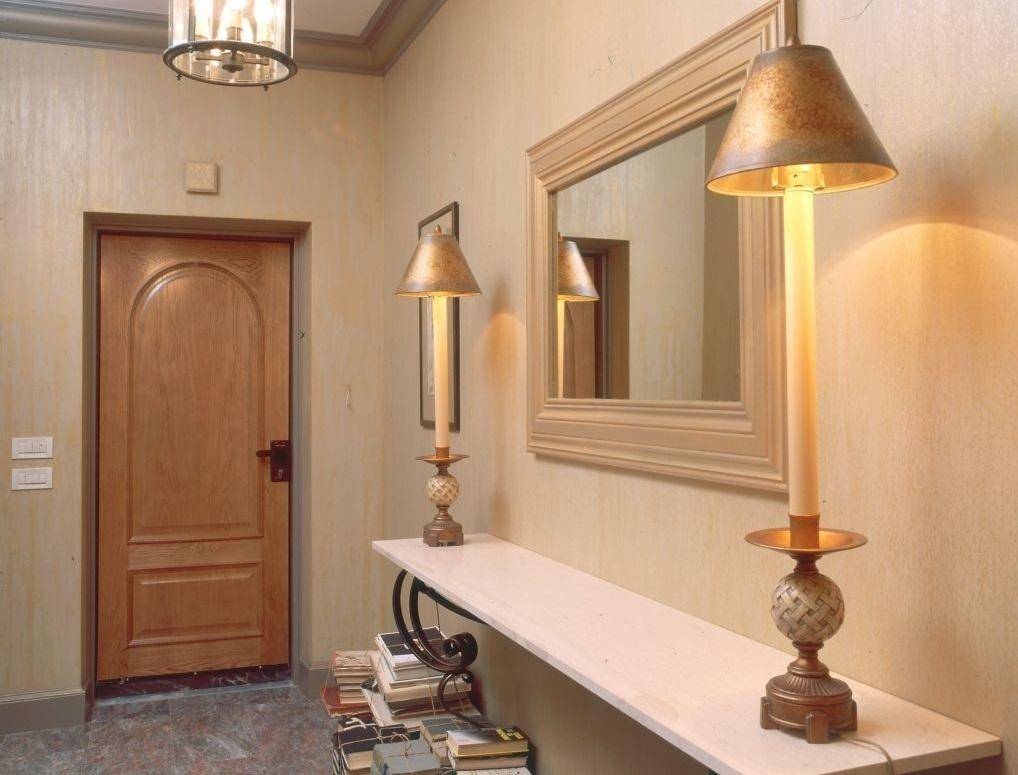 - идеально место для зеркала в прихожую – две оставшиеся стены. На одну повесьте его, напротив – картину с цветами, банкноту, фотографии счастливых моментов из жизни семьи;