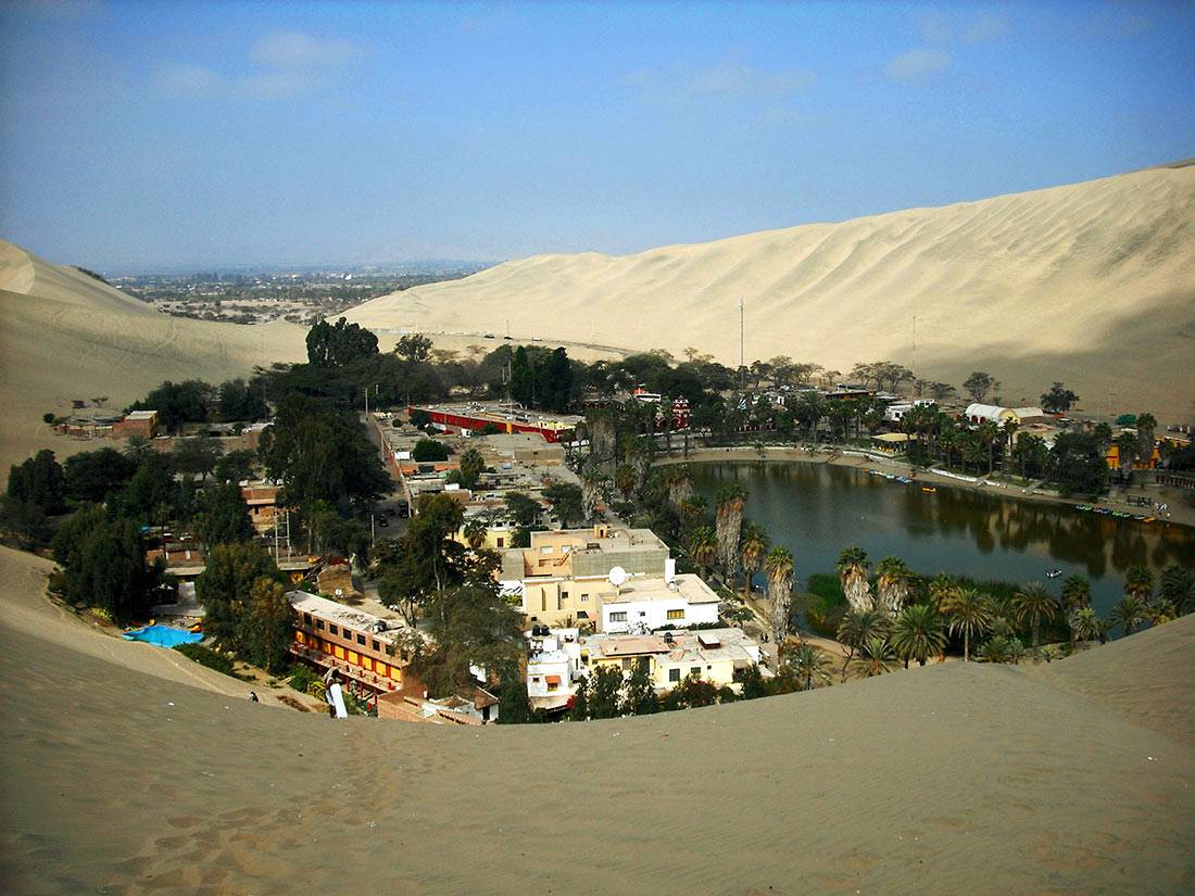 - Уакачина, Перу. Расположен близ города Ика, входит в число крупнейших оазисов мира.