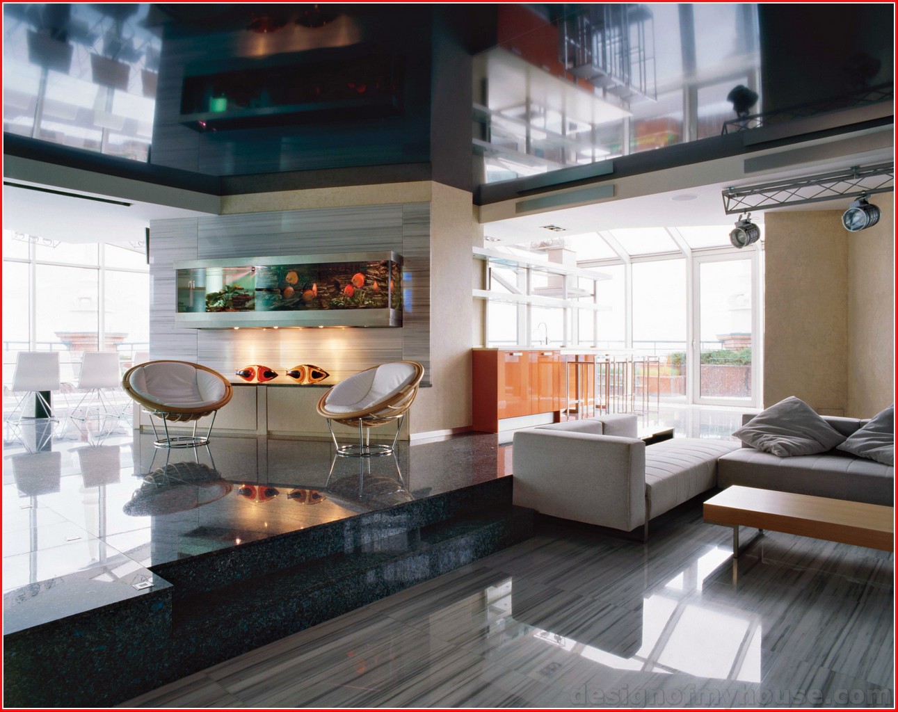 Эти конструкции обращают внимания на себя с первого взгляда, ведь в ней отображаются все предметы интерьера, создавая впечатление двухэтажного здания и вызывая неподдельное восхищение. Для эксклюзивности интерьера можно применять художественную печать, она отлично подчеркнет достоинства и скроет возможные недостатки, среди которых – небольшая площадь помещения.
