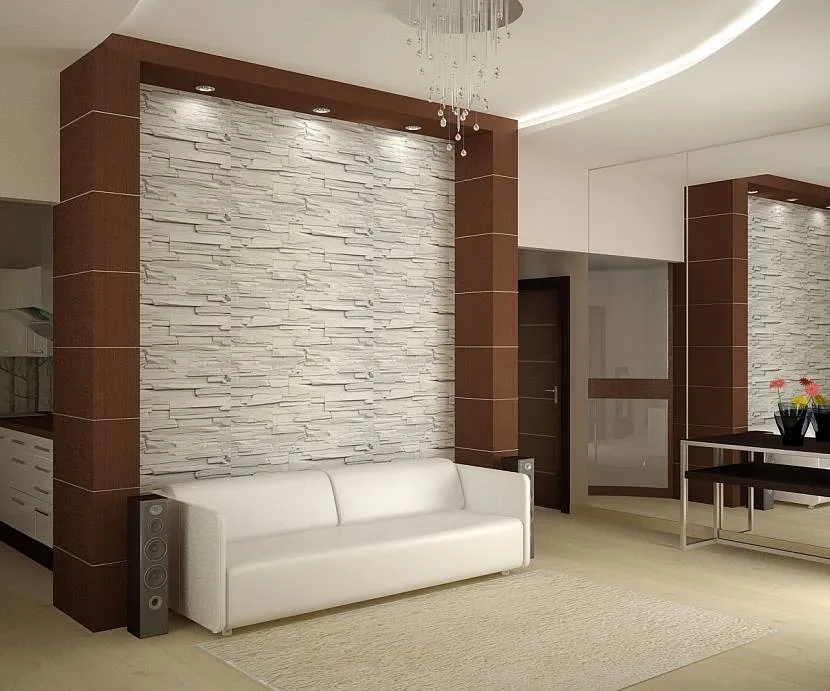 Декоративный камень для оформления коридора в квартиреИсточник rego-remont38.ru