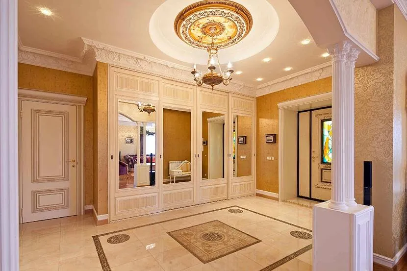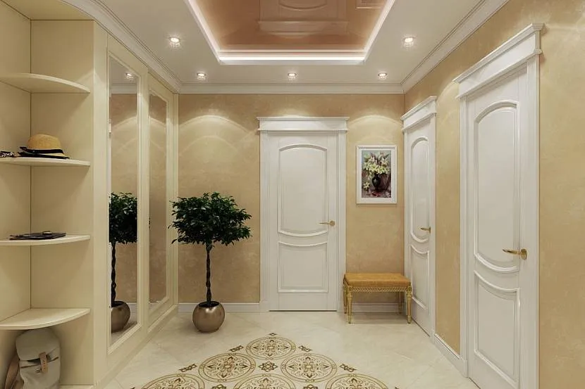 Большое количество декораций требует нейтрального фона. Лучшими для коридора считаются светлые оттенки стен. Обычно выбирается бежевый или кофейный. Белый цвет совершенно непрактичен, поскольку сразу подчеркнет даже самое незначительное загрязнение.