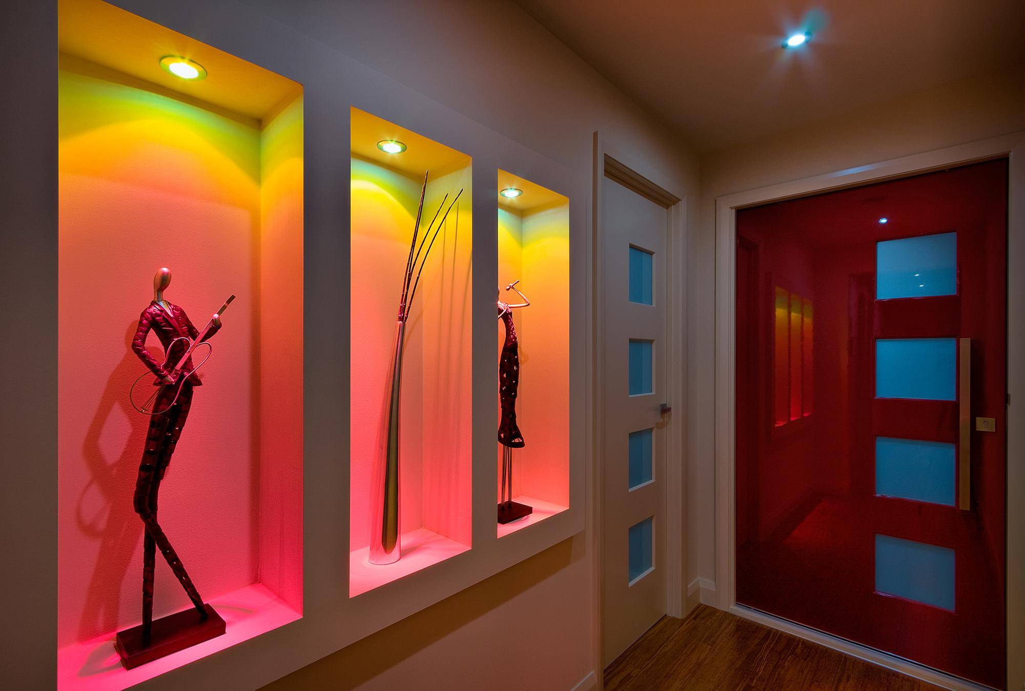 Ниши из гипсокартона с красивой подсветкой в коридоре