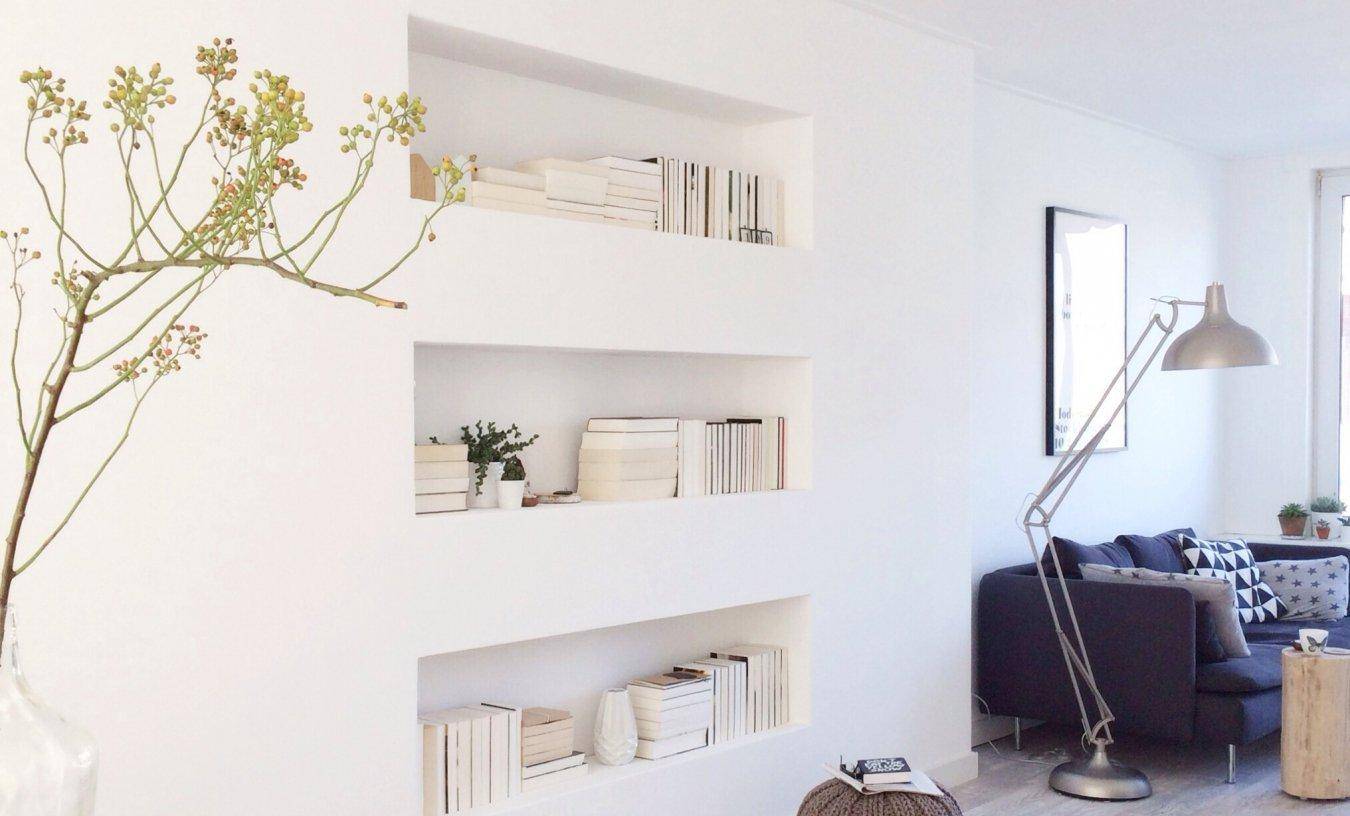 Ниши для книг в светлой гостиной