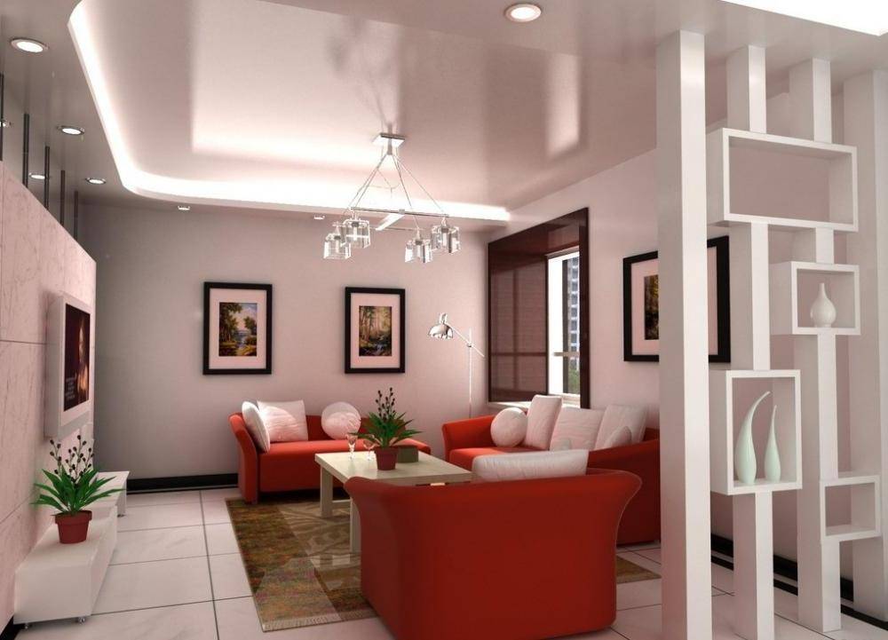 При этом размер самих ниш необходимо четко просчитывать, ведь если сделать их больше, чем требуется, то ниша сама “съест достаточно значительную часть комнаты. Необходимо заранее продумать вариант освещения, чтобы знать, потребуется ли в нише дополнительный бортик и правильно спроектировать конструкцию. Чтобы так провести зонирование помещения изготавливаются многоуровневые конструкции, граница уровней которой должны определить зоны. Это важный момент.