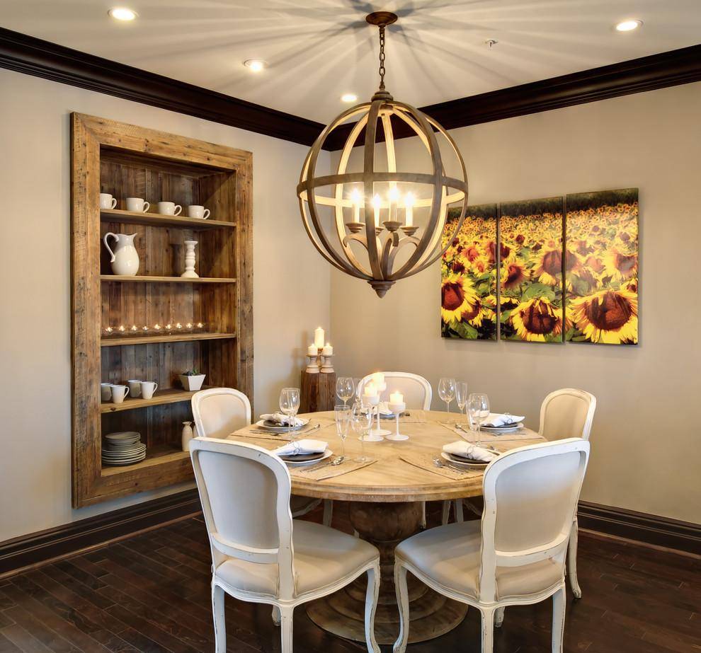 Интересным и оригинальным вариантом считается создание полок из ГКЛ в стене, которая разделяет кухню и столовую. Там они смотрятся гармонично и поэтому будут уместны.