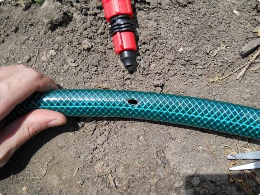 И поврежденный шланг отлично справляется с подобной задачей! Его размещают в верхнем слое земли на огороде или в саду. Предварительно в нем делают отверстия, которые имеют небольшой диаметр и располагаются на равных расстояниях друг от друга.