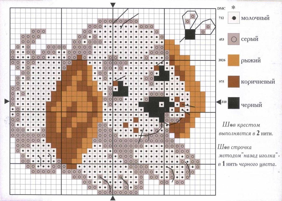 Вышивать можно разным стилем, выбор зависит от материала и изображения. Например, если хочется создать точную копию, как на схеме, то вышивать нужно методом счетного креста.