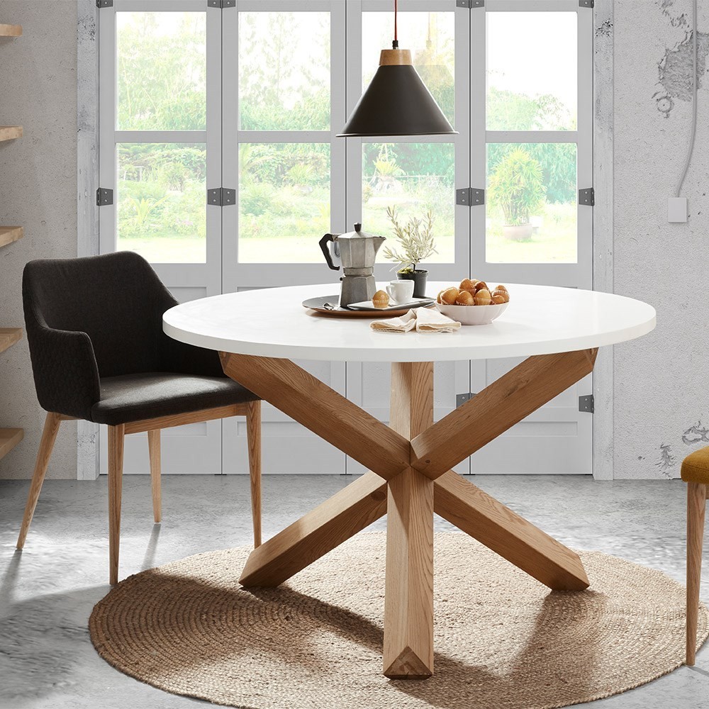 Благодаря своей форме круглые обеденные столы могут сделать комнату более просторной, потому что угловые углы кажутся «сбритыми».