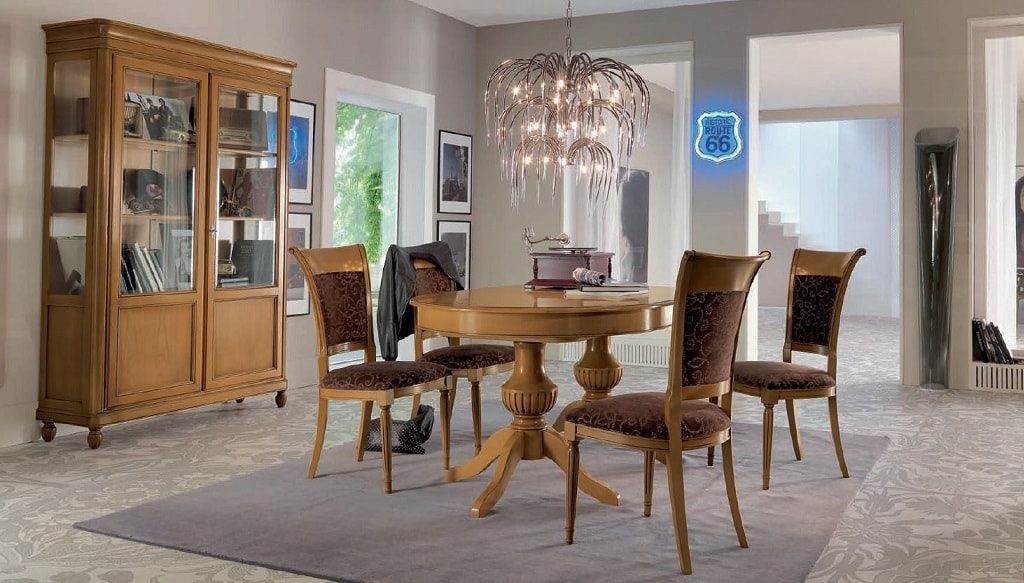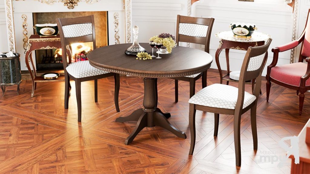 Обеденные классические столы оснащаются массивными столешницам. Зачастую такие модели становятся центральным элементом в интерьере. Производители предлагают классические столы различной формы.