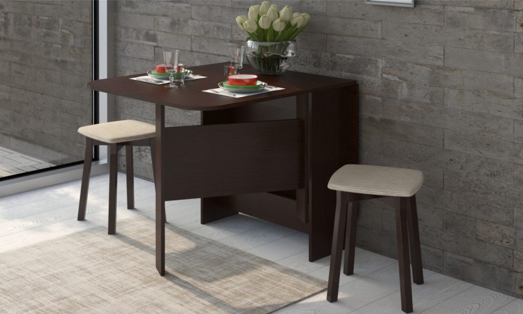 Обеденные столы для кухни не должны загромождать пространство. Мебель, размер которой можно в любой момент увеличить, наилучшим образом подойдёт для небольшой комнаты.