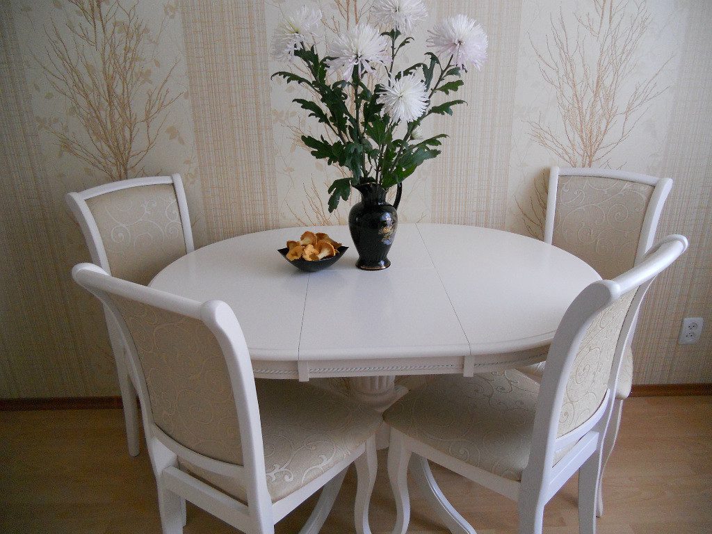 - Для большой семьи следует выбирать модель со столешницей более полутора метров, чтобы все домочадцы могли свободно разместиться за столом. Стол овальной формы будет уместен в обеденной зоне, оформленной в стиле барокко.