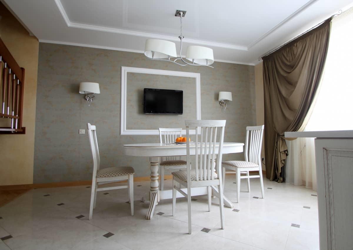 Разделение зон совмещенной кухни и столовой на этапе отделки