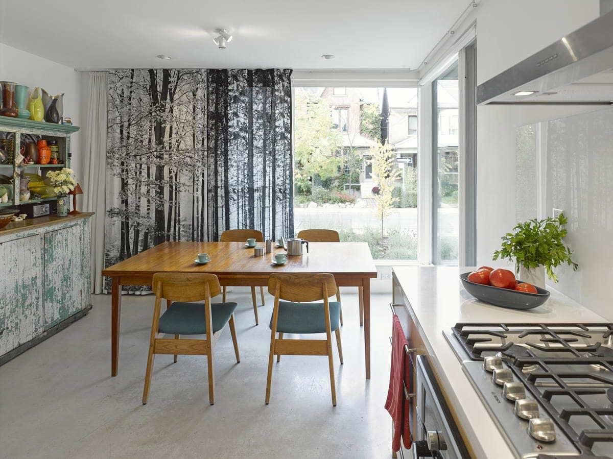 Такого же эффекта изолированности можно добиться, оборудовав обеденную зону в углу. Чтобы создать уютный «закуток», обеденный уголок можно ограничить: с одной стороны стеной, а с другой — легкой конструкцией или предметом мебели. Обеденные уголки зачастую не слишком удобны, зато поразительно уютны. Этот вариант подходит небольшим семьям.