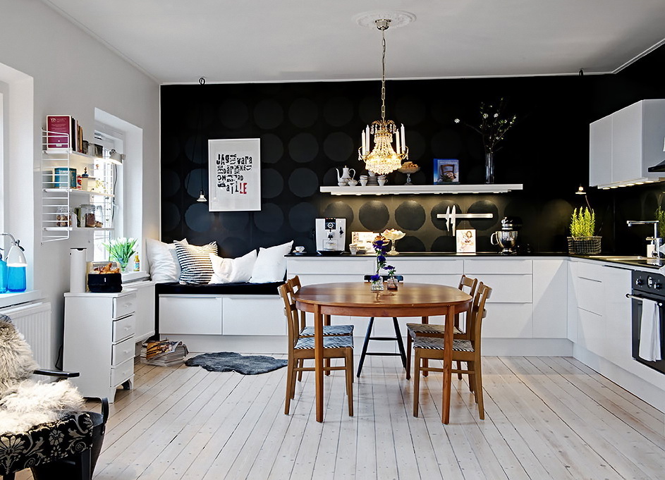 Как правило, мы редко используем кухню только в качестве рабочего помещения. Обычно в этой комнате мы размещаем столовую зону, а иногда даже и небольшую гостиную. Проще всего воссоздать такой многофункциональный дизайн, объединив кухню и комнату. Если стена между кухонным помещением и комнатой не является несущей, то ее можно снести (частично, устроив арку или даже полностью).