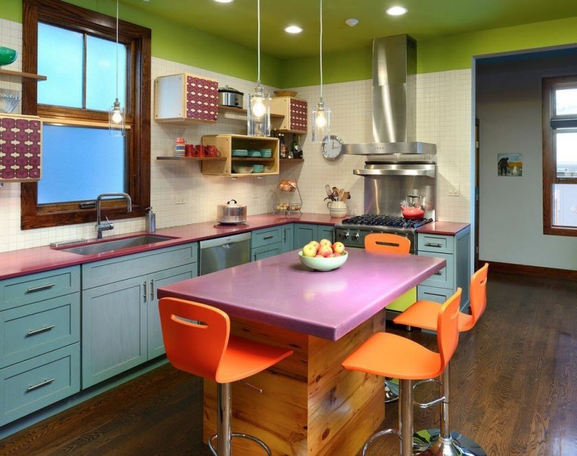 Цветовое зонирование считается наиболее эффективной градацией интерьера. Вне зависимости от создаваемого стиля, оптимальна мягкая подборка оттенков. Благодаря пастельным тонам, с точки зрения психологии гармония цвета в интерьере способствует улучшению пищеварения. К «съедобной» гамме оттенков относятся желтый, красный, зеленый и синий оттенки цветовой палитры.