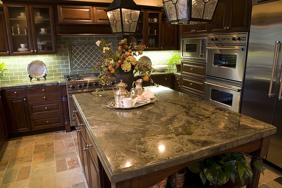 Такая столешница не только будет украшением дизайна кухни, но и будет нести в себе практичность